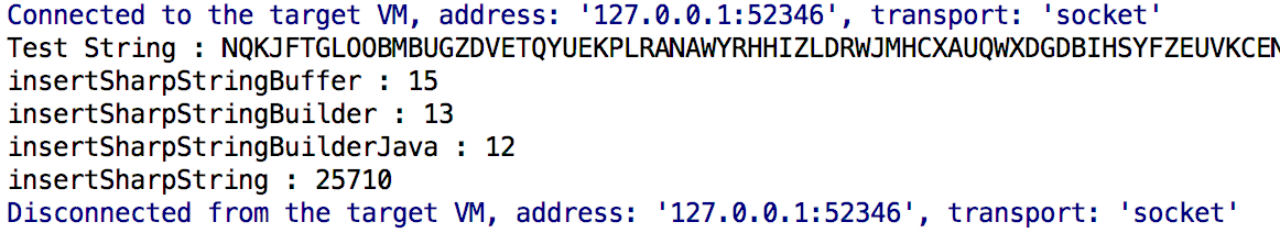 measuringTime(s) {insertSharpStringBuilderJava(s)} print("insertSharpString : ")